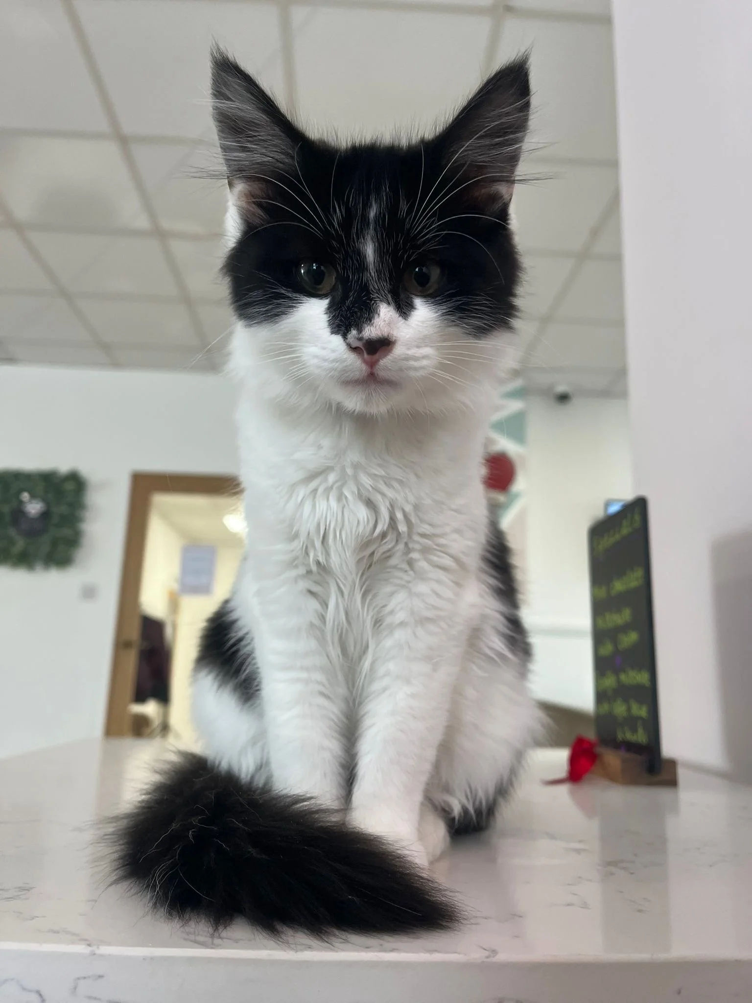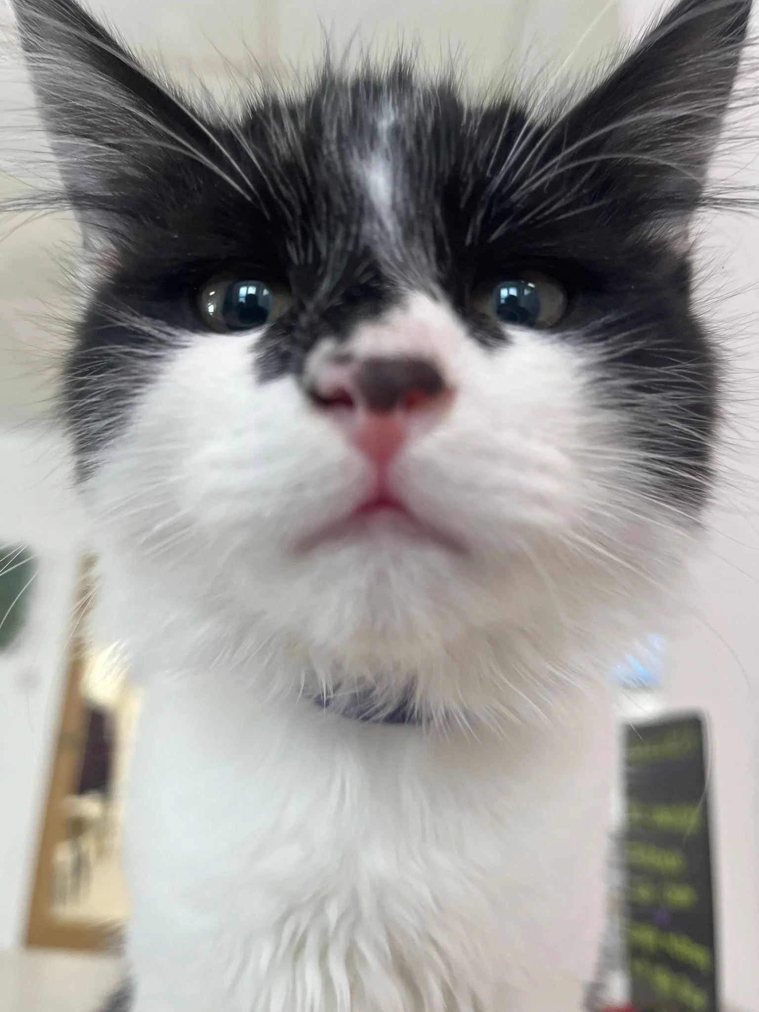 She coexists happily with other cats and is confident enough to live in a variety of home environments. Wednesday loves playtime, exploring and zooming about, and while she isn’t a lap cat just yet, she enjoys affection on her own terms. Wednesday has a cheeky nature, often attempting to steal human food but is very gentle when receiving her meals and treats.